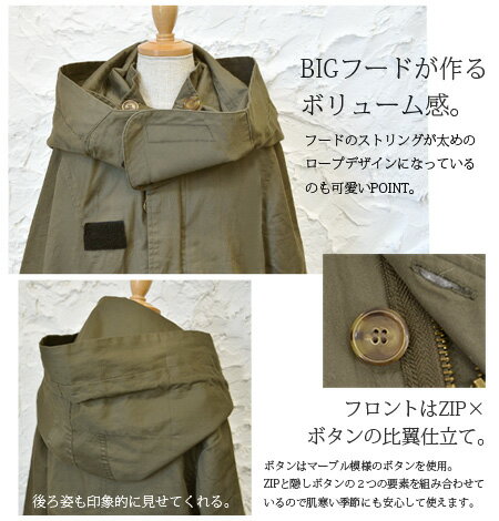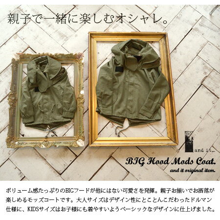 【andit_Kids】変形BIGフードモッズコート【メール便不可】(子供服 キッズ アウター ジャケット モッズコート 綿100% コットン ミリタリー フード付き 2way カーキ 男の子 女の子 モッズ コート ミリタリージャケット ミリタリーコート ショート丈)